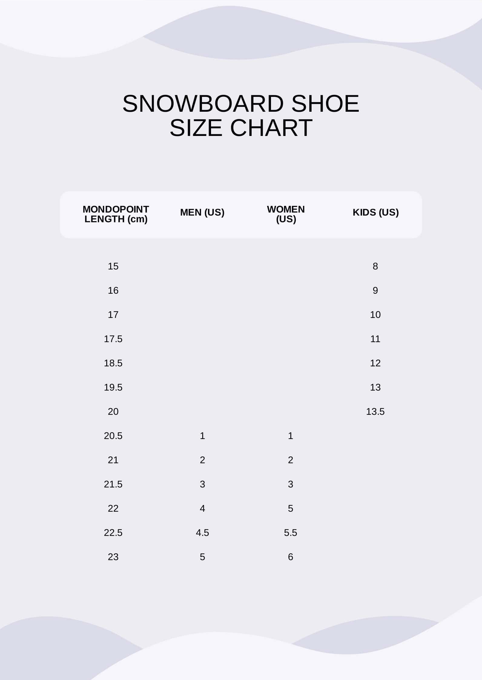 TypeCalendar’s 46+ Snowboard Size Chart collection helps you make data-based choices not guesses. Map height, weight, boot and style in one chart; learn faster on the first day, ride more confidently and quickly in the future. The right size is felt the moment you hit the slope: turns require less effort, you determine the board line.